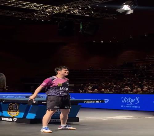 第一场比赛,樊振东代表德国萨尔布吕肯俱乐部出战,以3-0(11-1、11-5、11-5)速胜波兰选手霍多尔斯基。 尽管在发球环节被场边球迷的闪光灯频繁打断,但是樊振东在发球后衔接“爆冲”进攻的精准落点与终结效率依然突出,第一局仅让对手得到1分,全程压制性优势十分明显。 根据官方统计,本场比赛的净比赛时间为18分钟,三局总计仅让对手得到11分,首局甚至打出连得11分的碾压局。这场胜利也是他职业生涯的欧冠首胜。